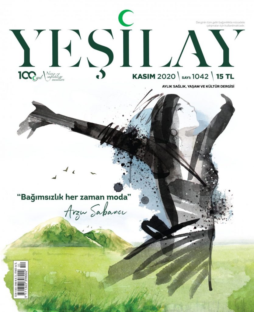 Yeşilay Cemiyeti tarafından düzenli olarak çıkarılan Yeşilay dergisinin Kasım ayı kapağı Arzu Sabancı tarafından hazırlandı. Temmuz ayı kapağında İrem Yaman yer almıştı. Modaya ilgisiyle bilinen Arzu Sabancı, yaptığı tasarımı “bağımsızlık her zaman moda” mottosuyla kapağa taşıdı. Arzu Sabancı, “Gençlere hayattan keyif alabilmenin herhangi bir maddeye bağımlı olarak değil, çalışarak, üreterek, hobiler edinerek sağlanabileceğini hatırlatmak istiyorum. Özellikle akranlar arasında kabul görmek ve popüler olmak için bağımlılık yapıcı maddelerin kullanımına yönelim olabildiğini biliyoruz ancak hiçbir şey bağımsızlıktan daha değerli ve anlamlı değil. Hem modaya hem de bağımlılıklardan uzak bir yaşama gönül vermiş biri olarak ‘bağımsızlığın her zaman moda olduğunu’ vurgulamak istiyorum. Hepimiz biliyoruz ki, günümüzde artık iyi ve sağlıklı yaşamanın kendisi bir trend haline geldi. Ben de gençlere bağımlılıklardan uzak yaşamanın önemini her fırsatta hatırlatıyorum ve eğer trendleri takip etmek istiyorsanız, öncelikle bağımsızlık modasını takip edin, Yeşilaylı olma ruhunu hissedin diyorum.” dedi.
